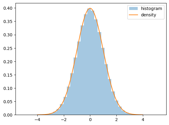 ax.plot(x_grid, norm.pdf(x_grid), label='density')
