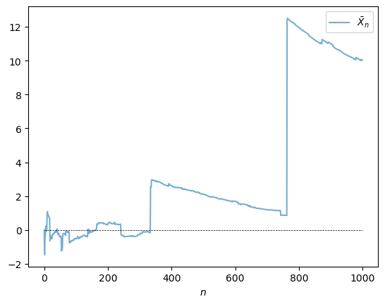 Thus, in the case of the Cauchy distribution, the sample mean itself has the very same Cauchy distribution, regardless of