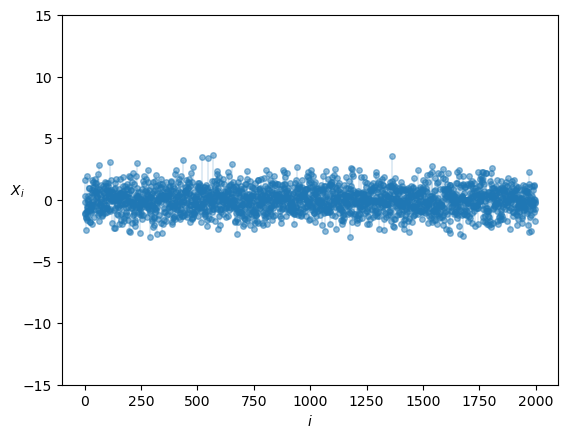 ax.plot(list(range(n)), data, linestyle='', marker='o', alpha=0.5, ms=4)